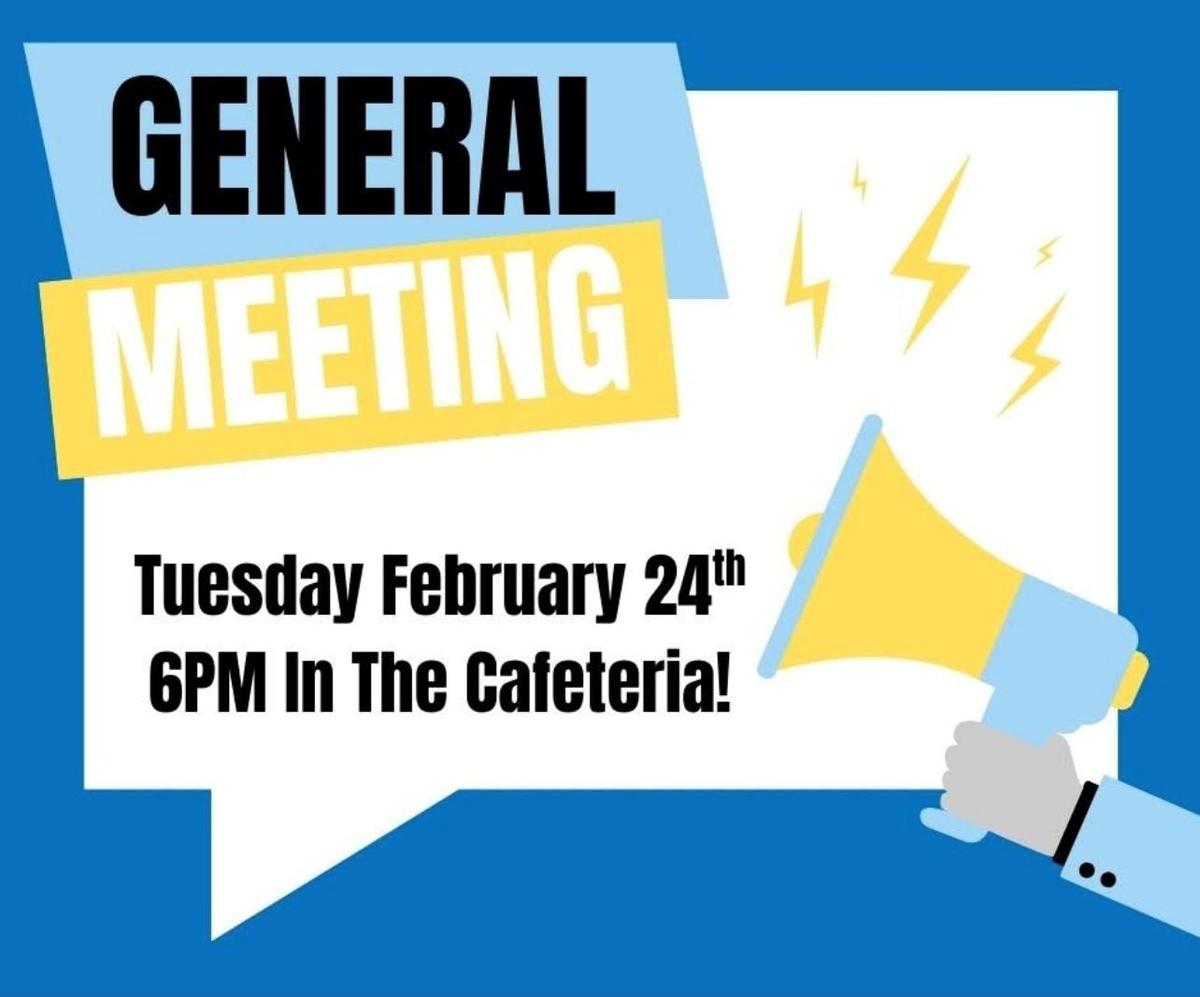 PTA General Meeting Tuesday, Feb 24th 6PM Join us Tuesday, February 24th @ 6:00PM for a PTA General Meeting in the Cafeterial!